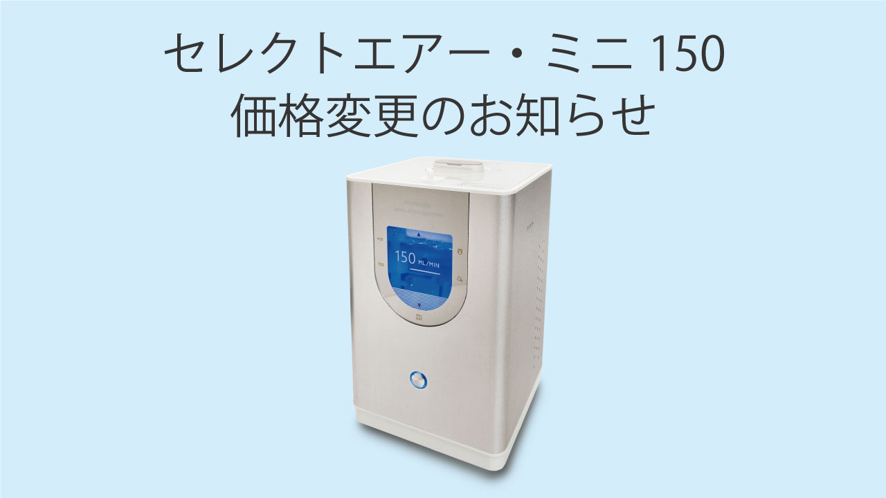 このたび、より多くのお客様にご利用いただけるよう、弊社の主力製品 「水素吸入器セレクトエアー・ミニ150」 の価格を見直し、さらにお求めやすい価格へ改定いたしました。